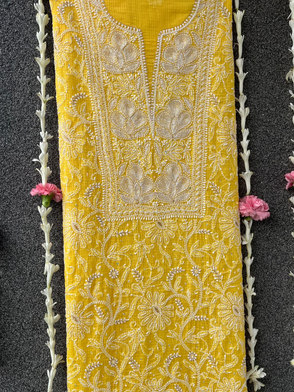 Yellow Kota Unstitched Chikankari & Pearl Festive Suit Set