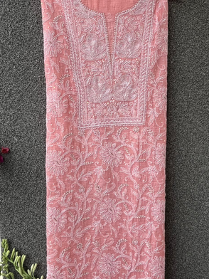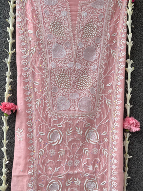 Pink Mul Chanderi Unstitched Chikankari & Pearl Festive Suit Set