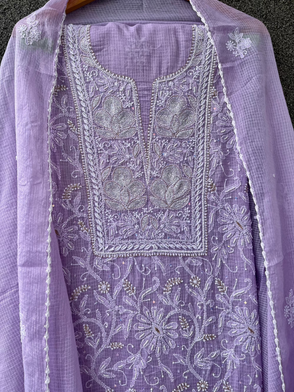 Lavender Kota Unstitched Chikankari & Pearl Festive Suit Set
