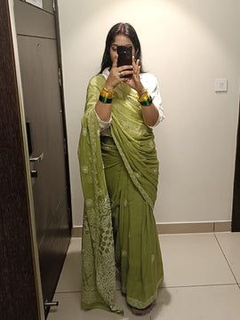 Sea Green Ombre Chikankari Chanderi Saree with Mukaish work