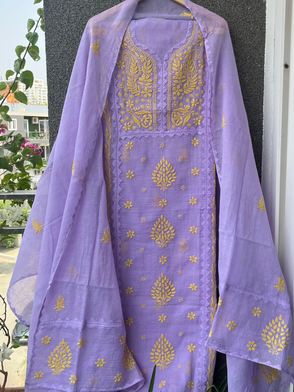 Lavender Kota Unstitched Chikankari & Pearl Festive Suit Set