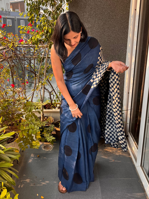 Blue Polka Pure Modal Silk Ajrakh Saree