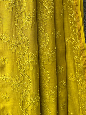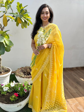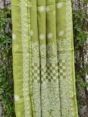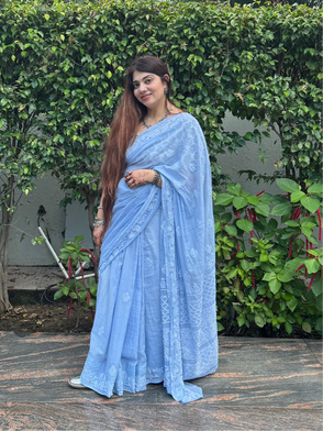 Sea Green Ombre Chikankari Chanderi Saree with Mukaish work