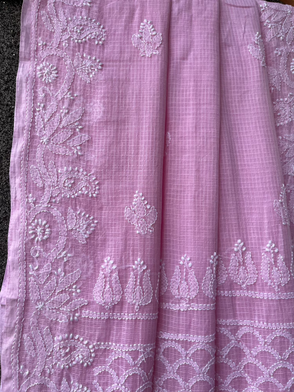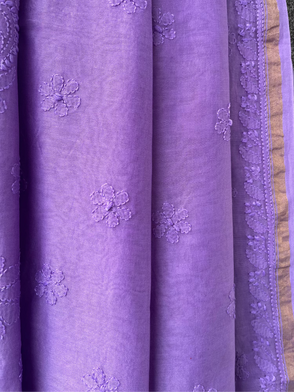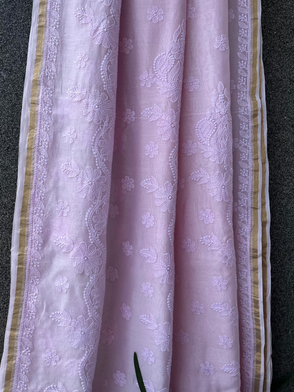 Burgundy Ombre Chikankari Chanderi Saree with Mukaish work