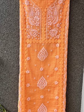 Akanksha Rust Orange Unstitched Chikankari Kurta Set