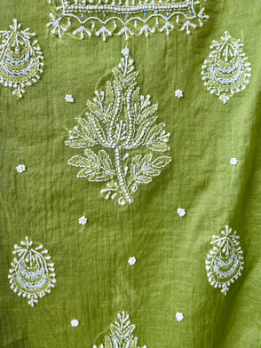 Sea Green Ombre Chikankari Chanderi Saree with Mukaish work