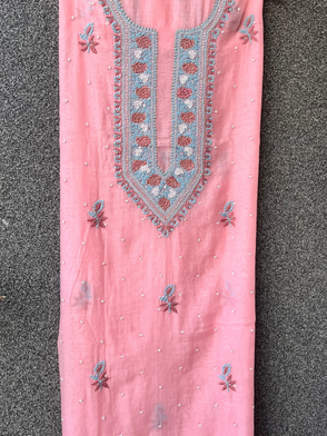 Pink Mul Chanderi Unstitched Fine Chikankari & Pearl Festive Suit Set