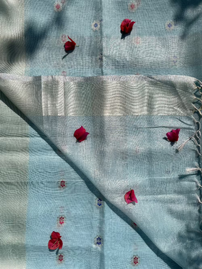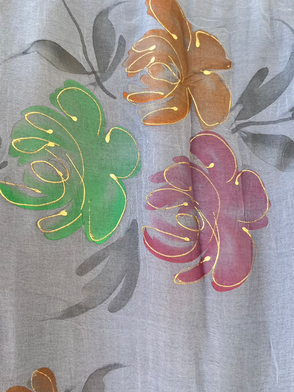 Steel Grey Hand-painted Saree with Colourful Flowers