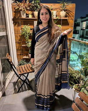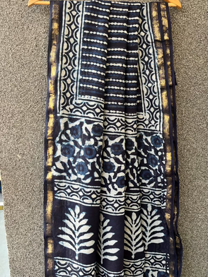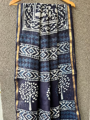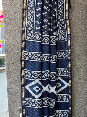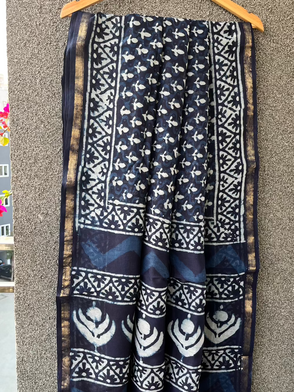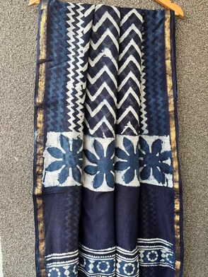 Indigo Lined Dabu Chanderi Saree