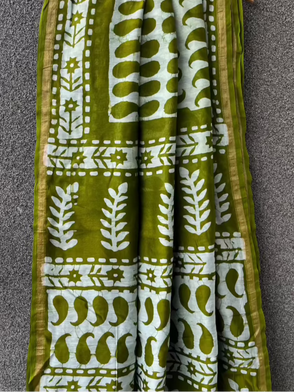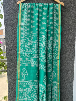 Green Dabu Chanderi Saree