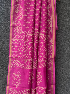 Pink Dabu Chanderi Saree