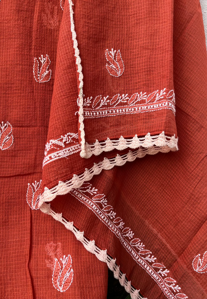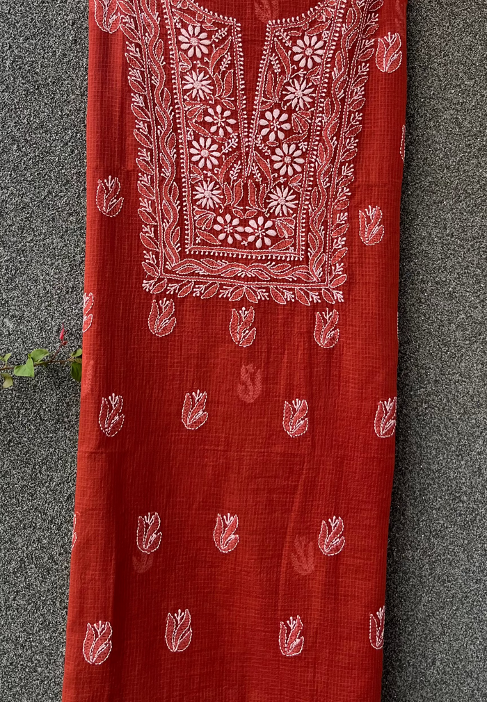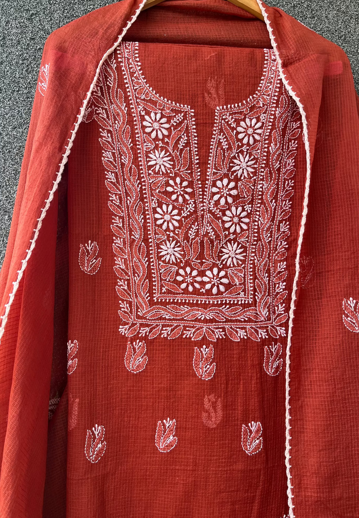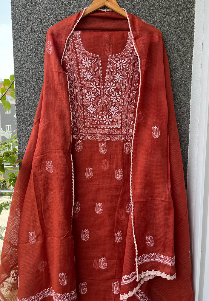 Akanksha Rust Orange Unstitched Chikankari Kurta Set