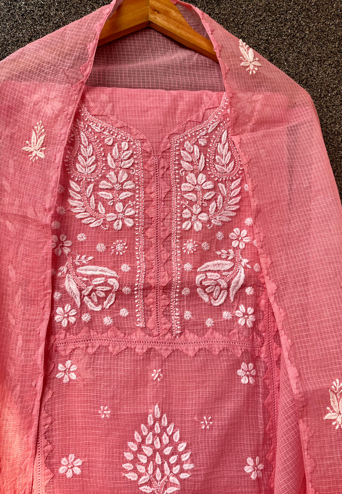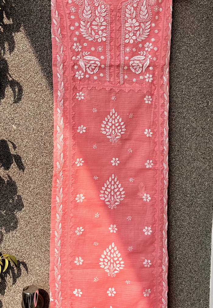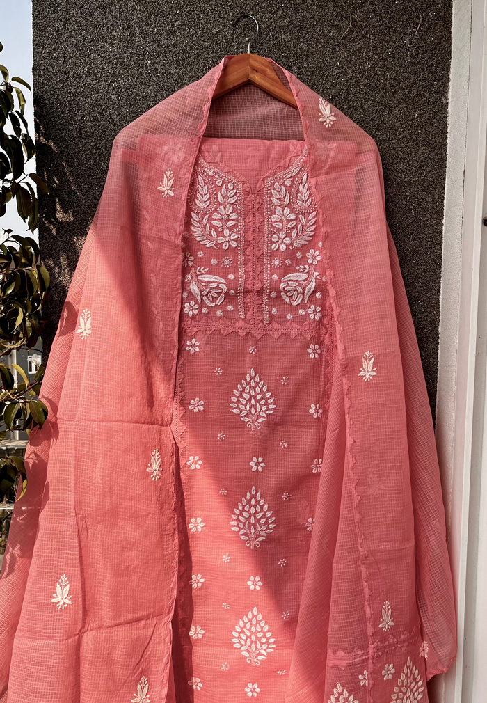 Anupama Peach Unstitched Chikankari & Applique Suit Set