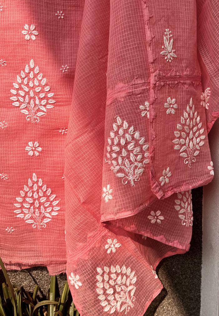 - Characteristic imperfections associated with handmade Chikankari like loose threads on the back of the fabric may be observed. Please do not cut the loose threads.