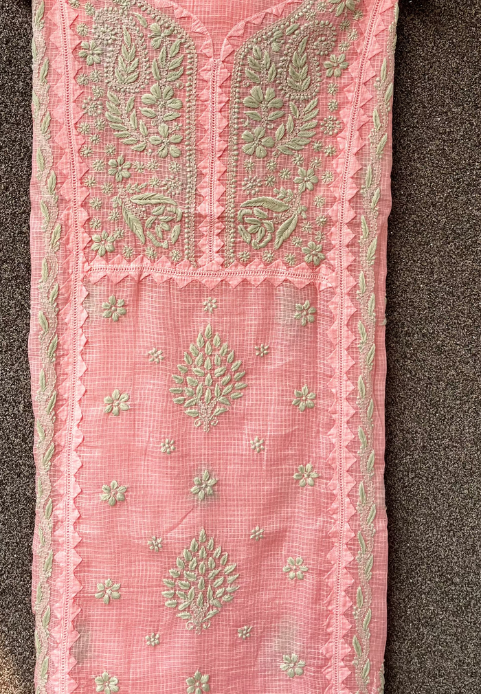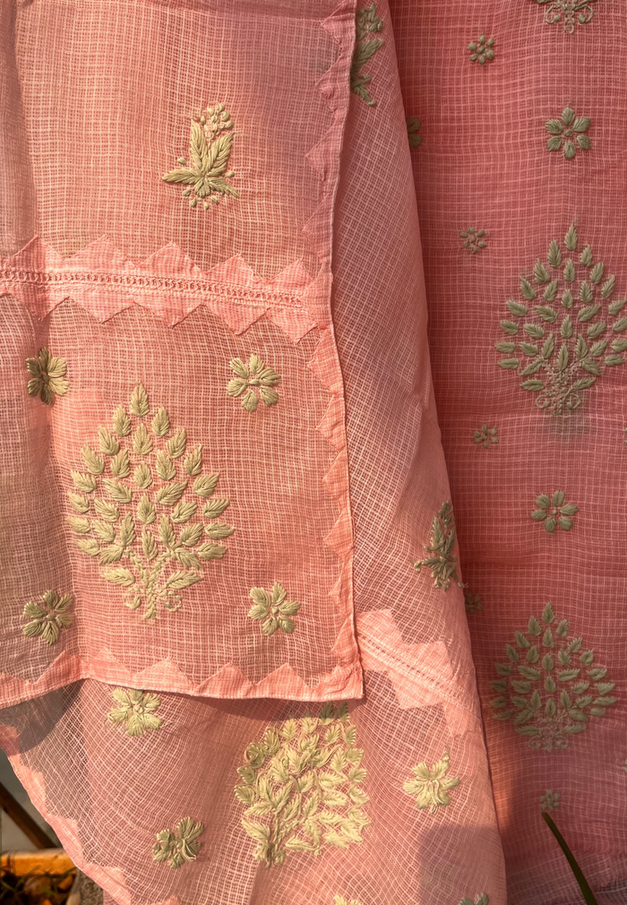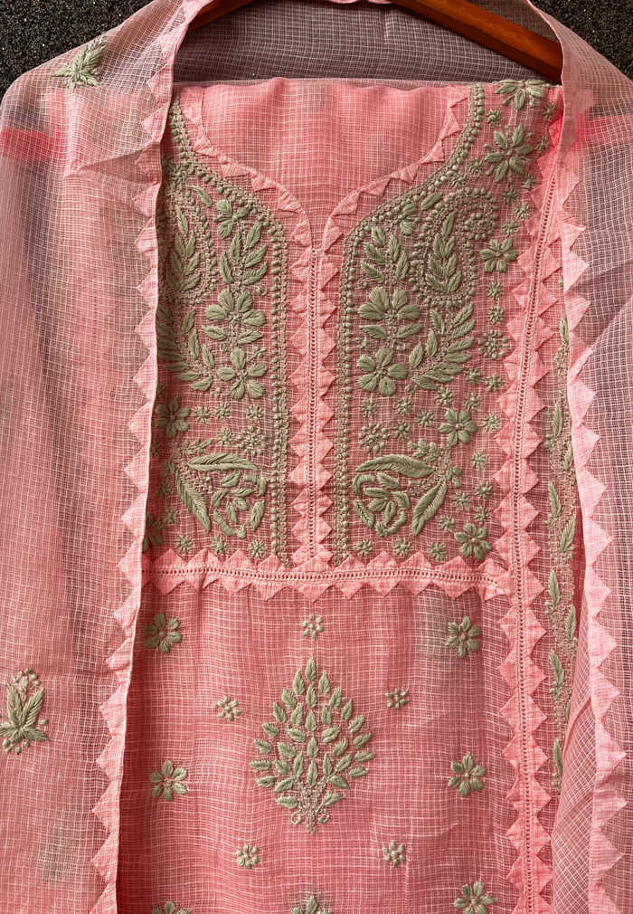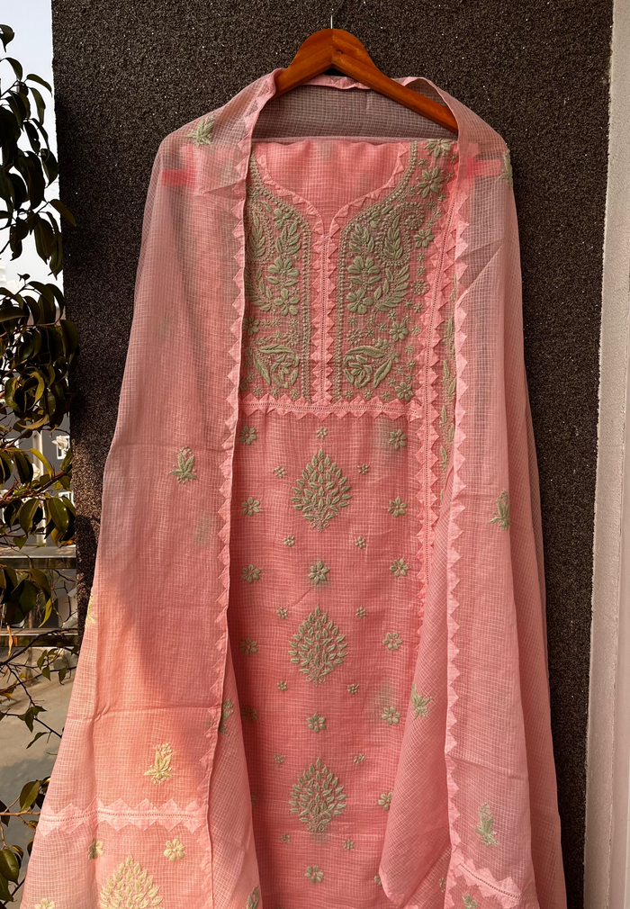 Anupama Pink & Green Unstitched Chikankari & Applique Suit Set