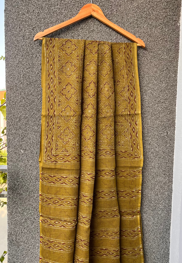 Green Sanganeri Kota doriya Ajrakh Saree