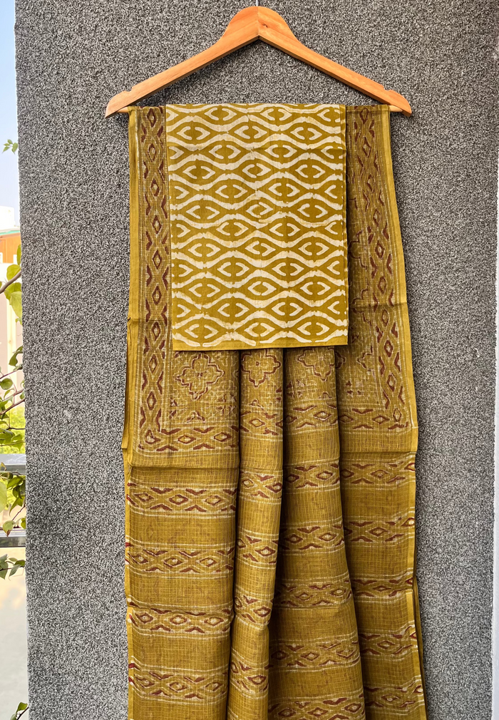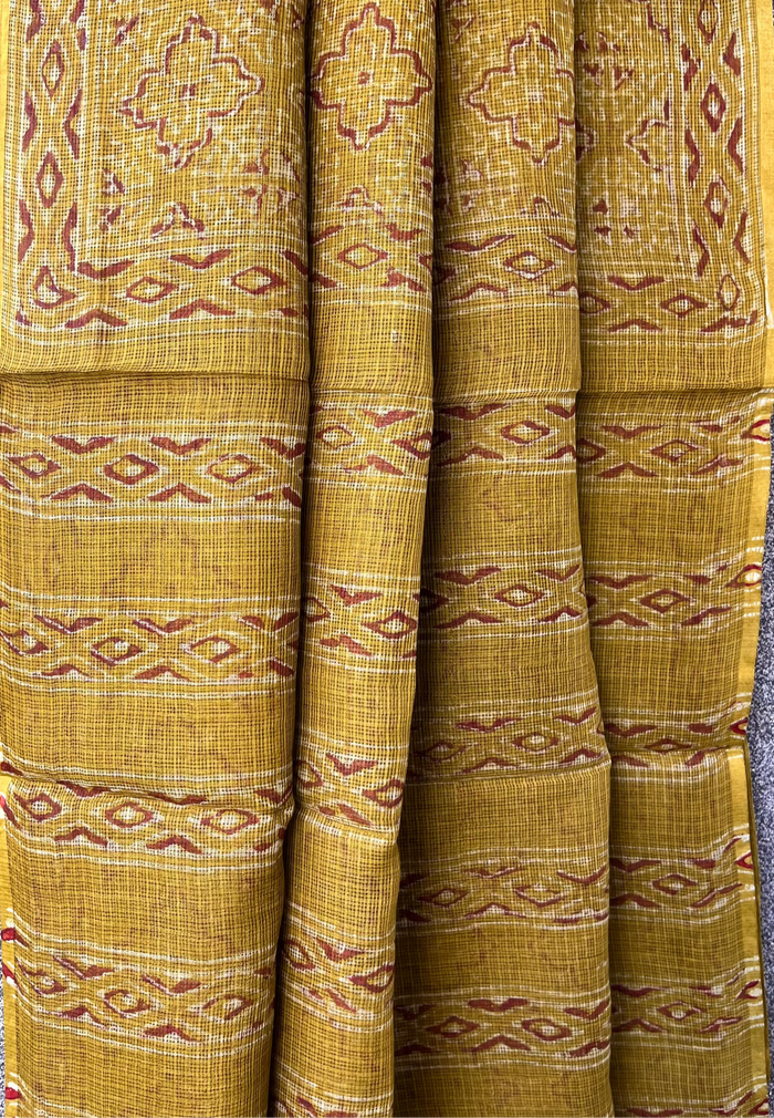 - Technique: Sanganeri block printing technique involve carving intricate designs into wooden blocks and repeatedly pressing them onto fabric, often cotton, to create patterns of floral motifs and fine lines.
