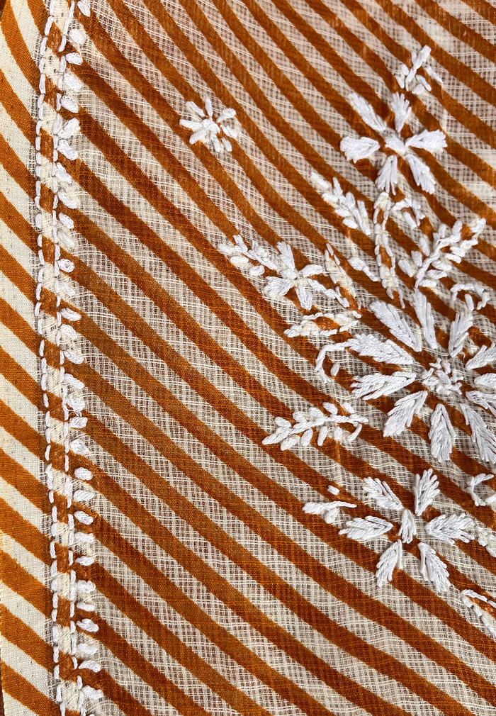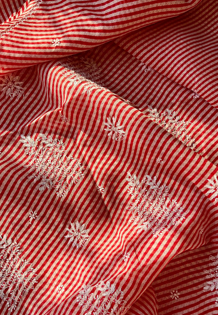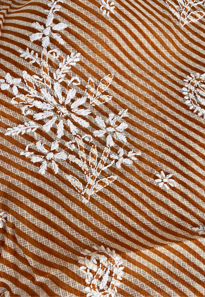 - Characteristic imperfections associated with handmade Chikankari like loose threads on the back of the fabric may be observed. Please do not cut the loose threads.