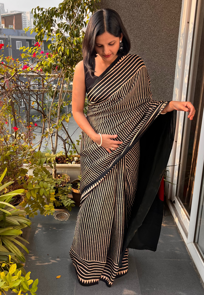 - Characteristic associated with hand block printing may be observed, and colours may fade or bleed due to the traditional dyeing and printing process employed