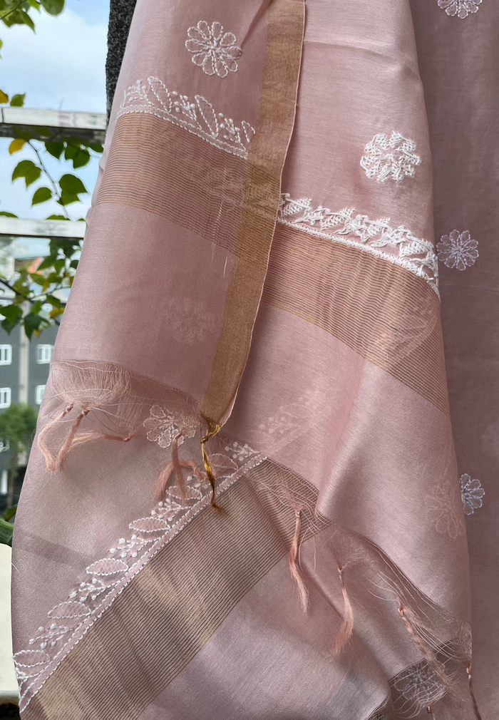 Sanchita Dusty pink Chikankari Kurta set with Mukaish work