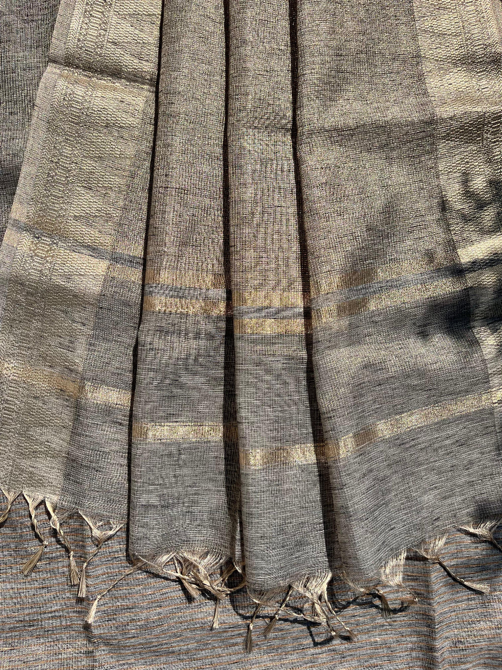 - Tissue Linen saree with a temple border