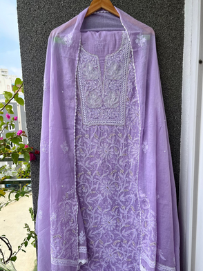 Lavender Kota Unstitched Chikankari & Pearl Festive 2 pc Suit Set